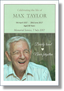 Order of Service booklets are often referred to as Service Sheets or Service Programs. They enable those attending to follow the proceedings and participate where appropriate. Readings, verses, songs/hymns etc are included as well as photographs. The booklets are a special keepsake for family and friends to treasure. I take care of all design, printing & delivery to ensure everything is taken care of with a minimum of fuss. Photographs and images of your choice can be included. Each booklet is given personal attention and each one is unique. Personal verses and poems can be included.
